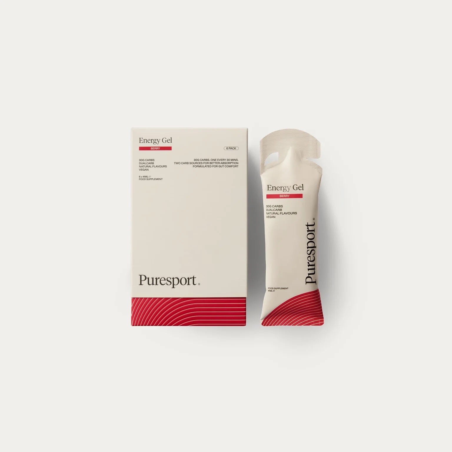 We've run the numbers for you. One gel, every 30 minutes. Puresport’s Berry Energy Gel is designed for runners and endurance athletes who want simple, effective fuelling. Each gel delivers 30g of DualCarb™ energy in a precise 1:0.8 glucose-to-fructose ratio, supporting sustained performance and reducing gut discomfort. The light berry flavour is refreshing, easy to take mid-run, and made with natural ingredients to help you fuel smarter, train stronger, and recover faster, every 30 minutes. Available in 6-pack, 12-pack and 24-pack sizes.