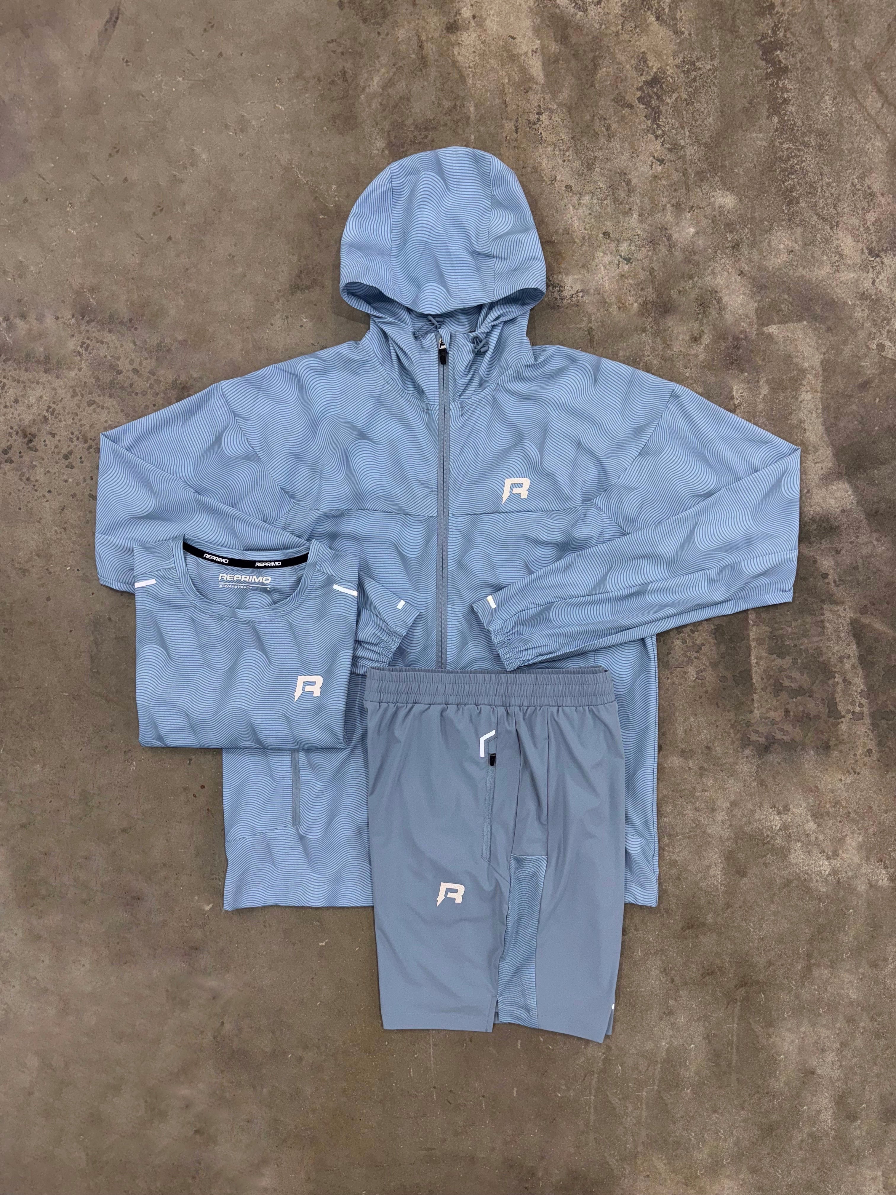 REPRIMO RIPPLE SKY BLUE 3 PIECE SET - JACKET / T SHIRT / SHORT