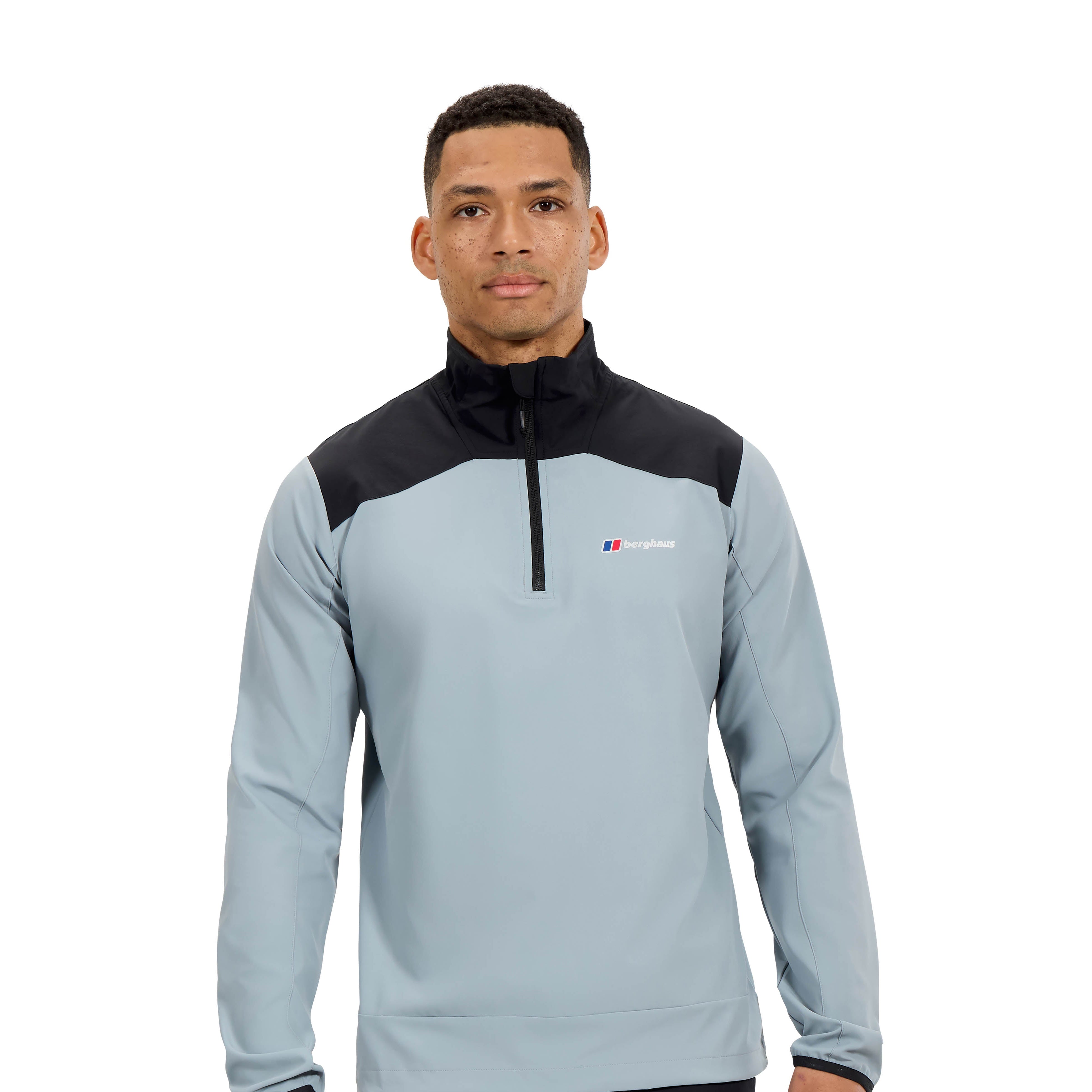 Berghaus Terrain Trek Half Zip Jacket In Grey is a lightweight pullover jacket in a colour block design. A half zip fastening at the neck with a stand up collar which features a branded trim and the signature Berghaus logo printed on the reverse. An additional logo is printed on the left of the chest. Elasticated trim on the long sleeves with an adjustable toggle hemline.
