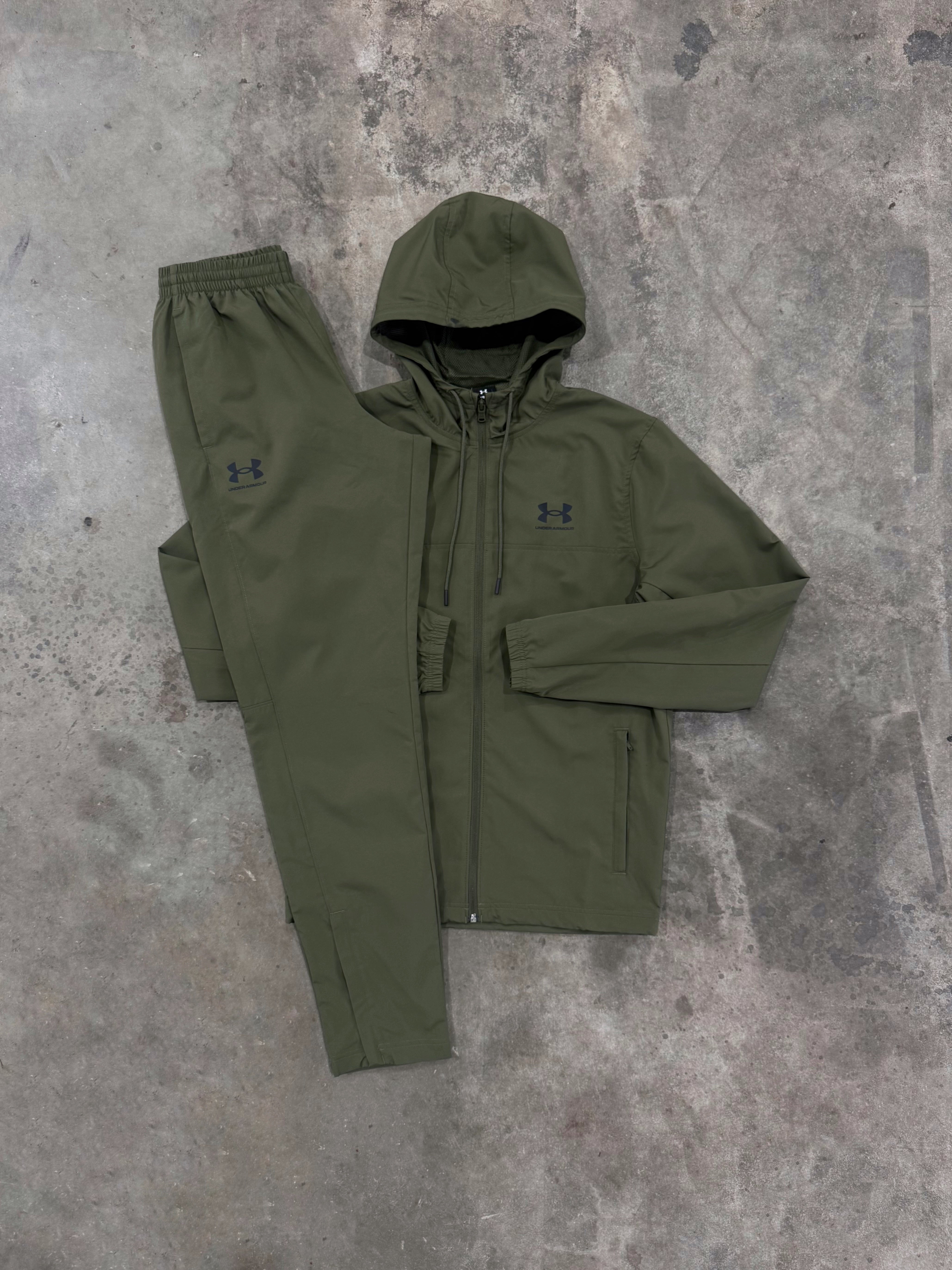 UNDER ARMOUR KHAKI RIVAL WOVEN TRACKSUIT - JACKET / PANT
